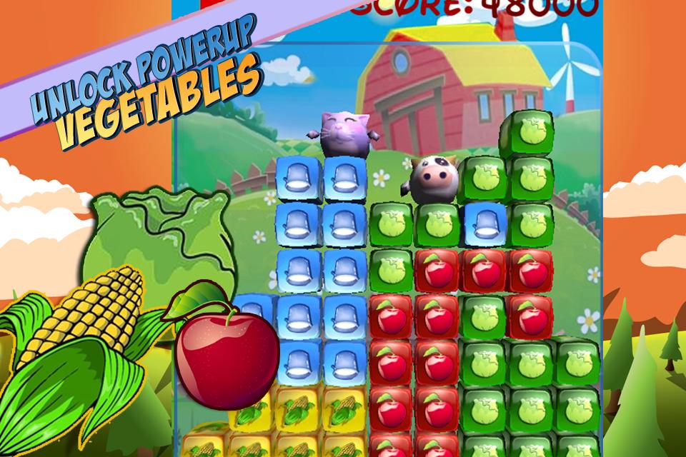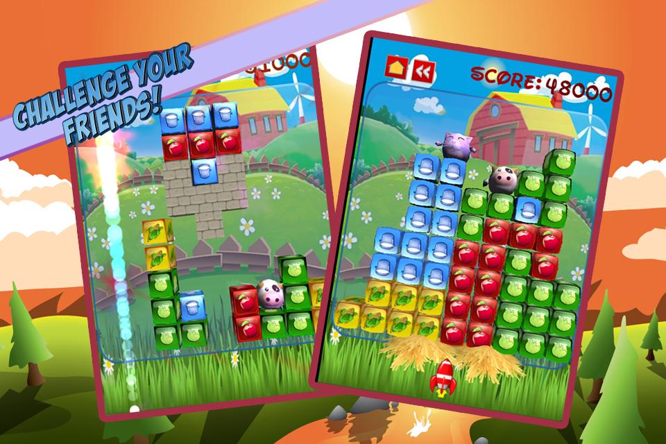 Passen Sie zwei oder mehr Blöcke derselben Farbe an, um das Niveau zu löschen und die Nutztiere zu retten.